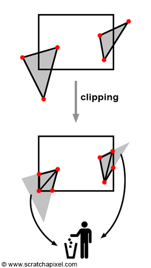 렌더링 파이프라인의 정점 후처리 단계에는 절단(Clipping)을 포함한다. 절단은 절단 공간의 경계에 조금이라도 속해 있지 않는 기본 요소들을 제거한다. 절단 공간의 좌표 범위는 -1에서부터 1까지다.