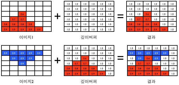 각기 다른 좌표 공간을 변환하는 데에는 주로 행렬 곱을 사용한다. 행렬의 편리한 기능 중 하나는 행렬을 구성할 수 있다는 점이다. 따라서 어떤 행렬은 객체 공간에서 절단 공간으로 변환할 수 있다.