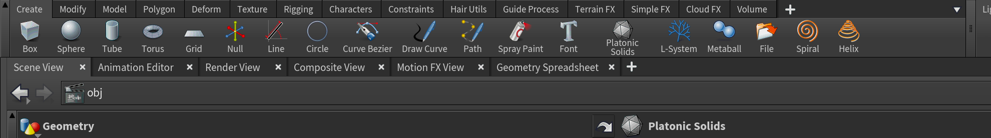 클릭하지 않고 Enter버튼을 누르면 Houdini의 원점에 배치합니다.