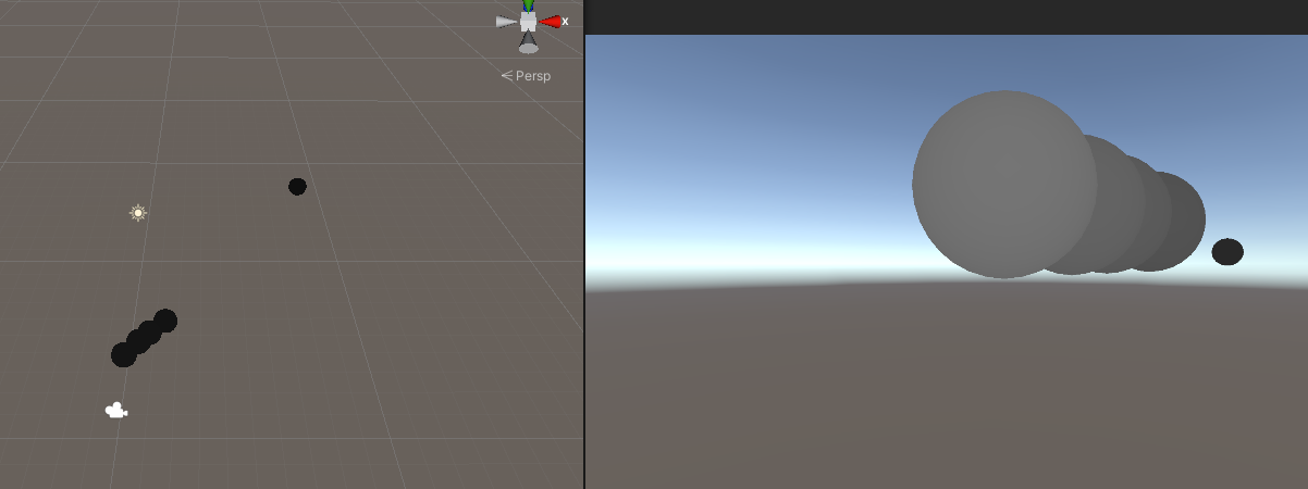 뒤에 있는 하얀색 큐브가 먼저 그려지고 앞에 있는 검은색 공이 뒤에 그려지면 문제 없이 그려집니다.