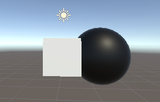 뒤에 있는 하얀색 큐브와 앞에 있는 검은색 공이 있습니다.