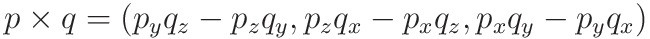 뺄셈은 덧셈과 스칼라 곱셈의 조합으로 나타낼 수 있으며 , 나눗셈 역시 마찬가지이므로 별도로 정의하지 않는다. 이들 연산 중에서 우리에게 중요한 것은 내적과 외적이다.