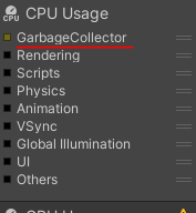 다음으로 가비지 컬렉션이 병목 현상을 일으키는지 확인합니다. 가비지 컬렉션은 Unity의 자동 메모리 관리와 관련된 기능으로 작업 속도가 느릴 수 있습니다.