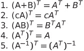 5. (A^{-1})^{T} = (A^{T})^{-1}\\