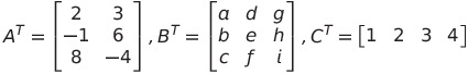 다음 세 행렬의 전치행렬을 각각 구해 보자.