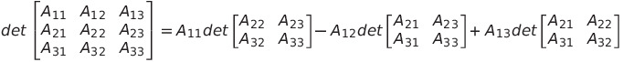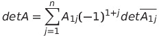 A가 n x n 행렬이라고 할 때, n > 1 에 대해 A의 행렬식은 다음과 같이 정의된다.