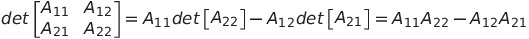 의 정의를 적용해 보면, 2 x 2 행렬의 행렬식의 정의는 결국 다음과 같다.