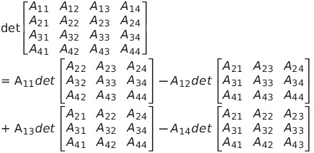 그리고 4 x 4 행렬의 행렬식은 다음과 같다.